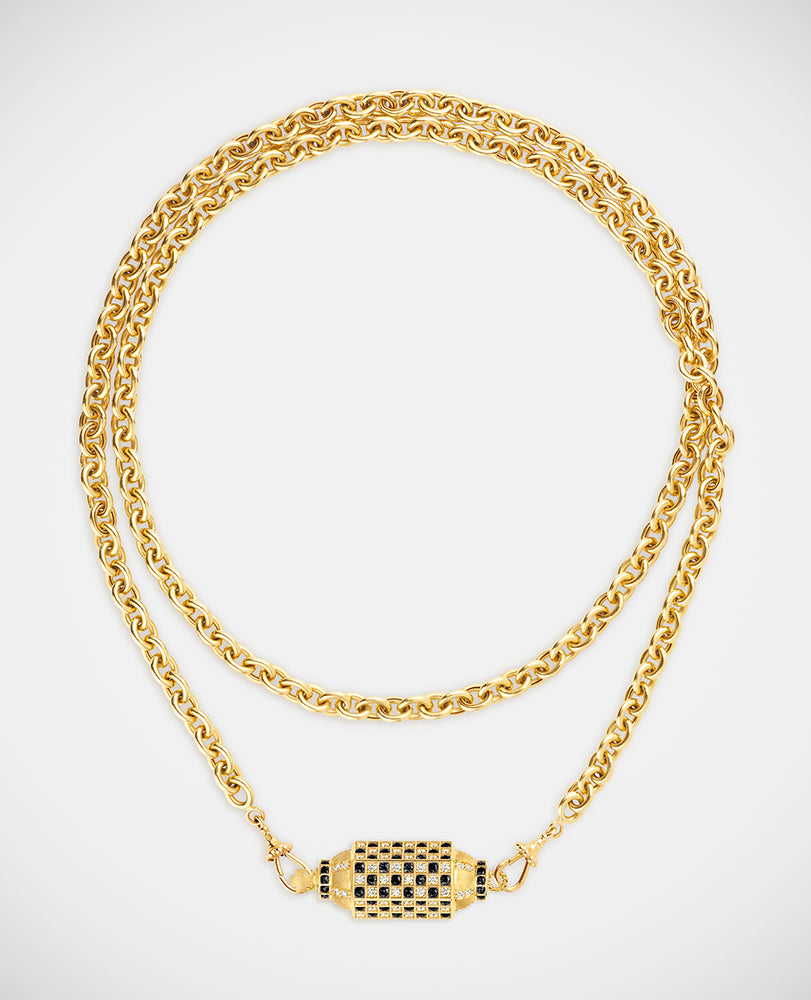 Marie Lichtenberg’s lockets make jewellery the storyteller of your life, talisman necklaces infused with meaning that are designed to mark personal milestones with heart and soul. Handcrafted by the world’s best artisans in 18kt gold, all the designer’s irreverence and style is poured into the details and inscriptions, from vibrant enamel or colored stones and intricate guilloché, to carefully set diamonds and custom chains. Create your own locket necklace; add your locket to a chain or a cord to express your personal look and tell a unique story. Whether you choose an Ebony piece for a statement necklace, a four-leaf clover for luck or a heart for love, Marie’s lockets speak a universal language of symbolism. Choose you special piece designed to be handed down as a gift through the generations, as a jewel with soul.