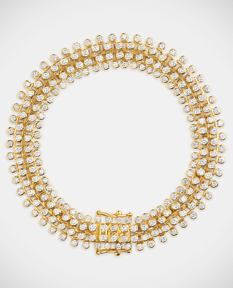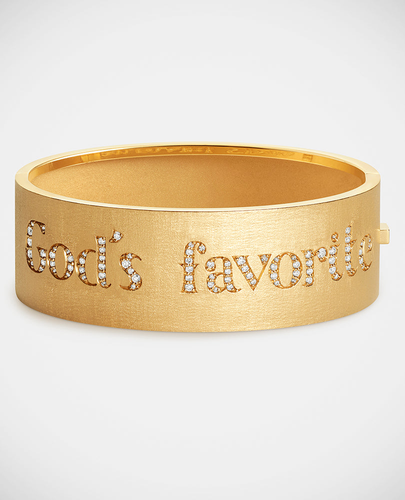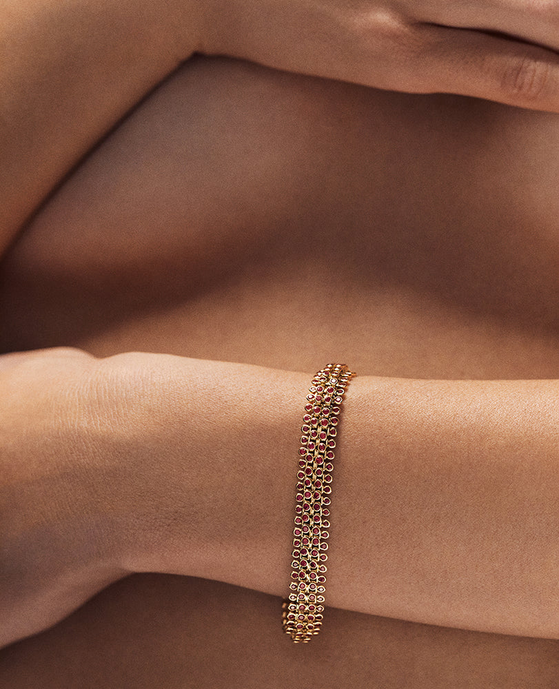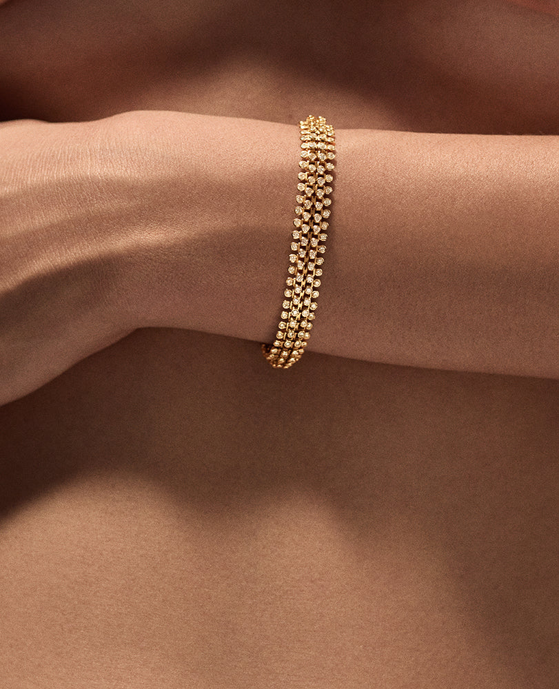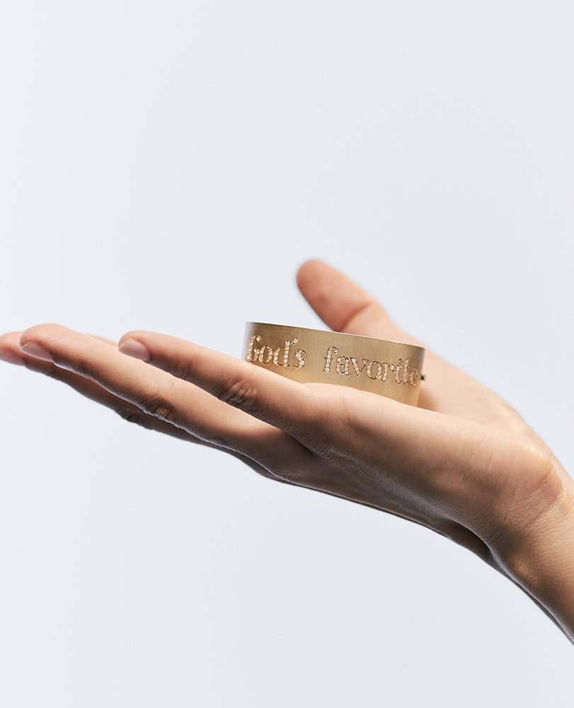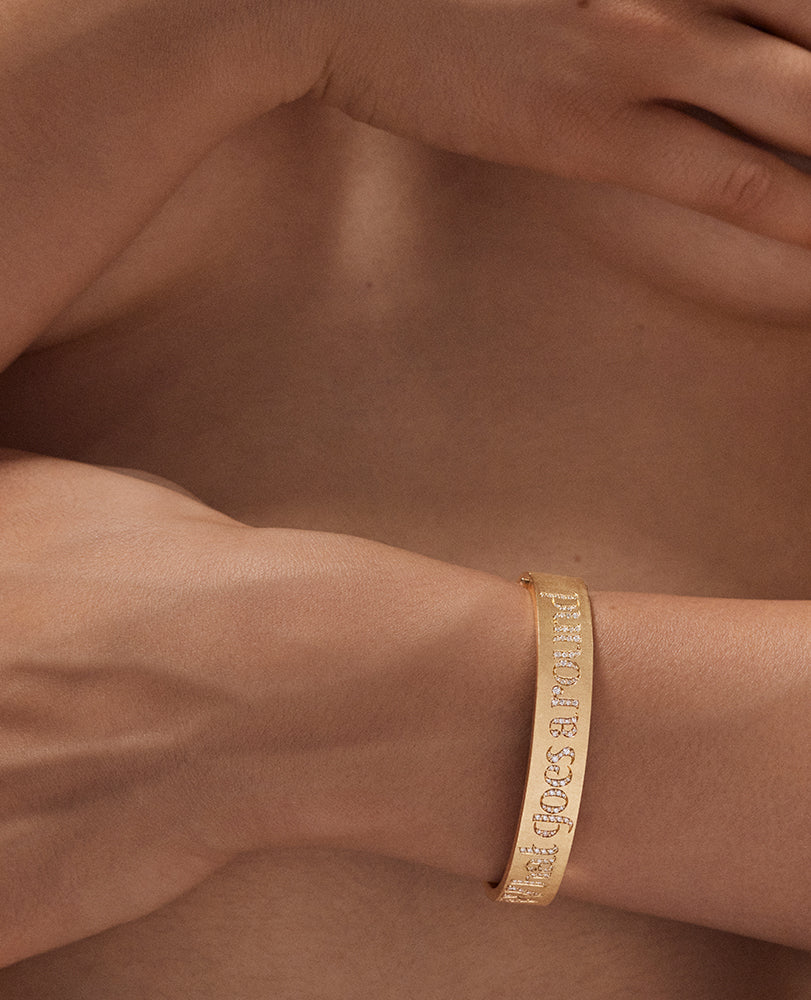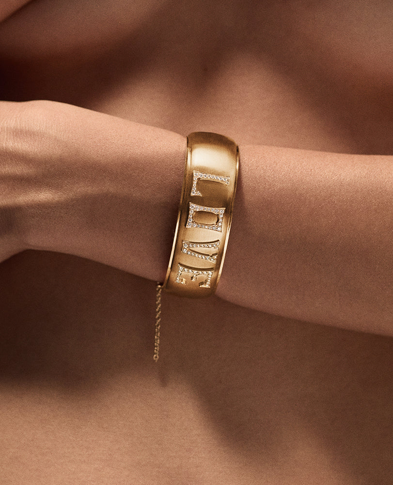 Our gold bracelets and cuffs are a concentration of Marie Lichtenberg style. Customizable name bracelets draw inspiration from Seventies design, for a striking gold cuff with custom-designed letters picked out in sparkling diamonds. Meanwhile, our God’s Favorite bangle says it all, in brushed gold and diamonds; or you can choose the iconic Baby Locket bracelet in white or yellow gold, in the full gold or leather version.